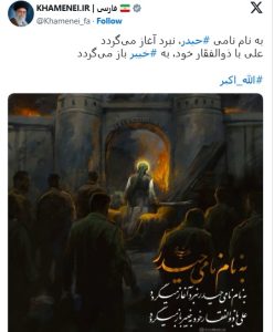 ایک پوسٹ میں تلوار تھامے ایک شخص کی تصویر شامل ہے جو قلعے میں داخل ہو رہا ہے، جسے کئی تجزیہ کاروں نے خیبر کے قلعے کی تاریخی فتح سے جوڑا ہے، جس سے پیغام کو مذہبی اور جذباتی شدت حاصل ہو گئی ہے۔