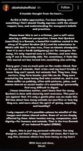 ‘‘علیزے شاہ کا عیدالاضحیٰ پر جذباتی پیغام: ’’قربانی کی روح کو سمجھنے کی ضرورت ہے