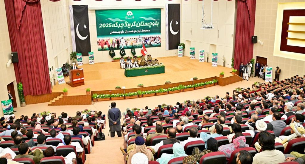 کوئٹہ: وزیرِ اعظم محمد شہباز شریف اور چیف آف آرمی اسٹاف فیلڈ مارشل سید عاصم منیر (نشانِ امتیاز – ملٹری) نے کوئٹہ کے زہری آڈیٹوریم میں قبائلی عمائدین کے ایک بڑے جرگے سے مشترکہ خطاب کیا۔ جرگے کا مقصد بلوچستان میں امن و امان کی صورتحال، خاص طور پر بھارت کی جانب سے جاری پراکسی وار پر بات چیت اور مقامی قیادت سے مشاورت تھا۔