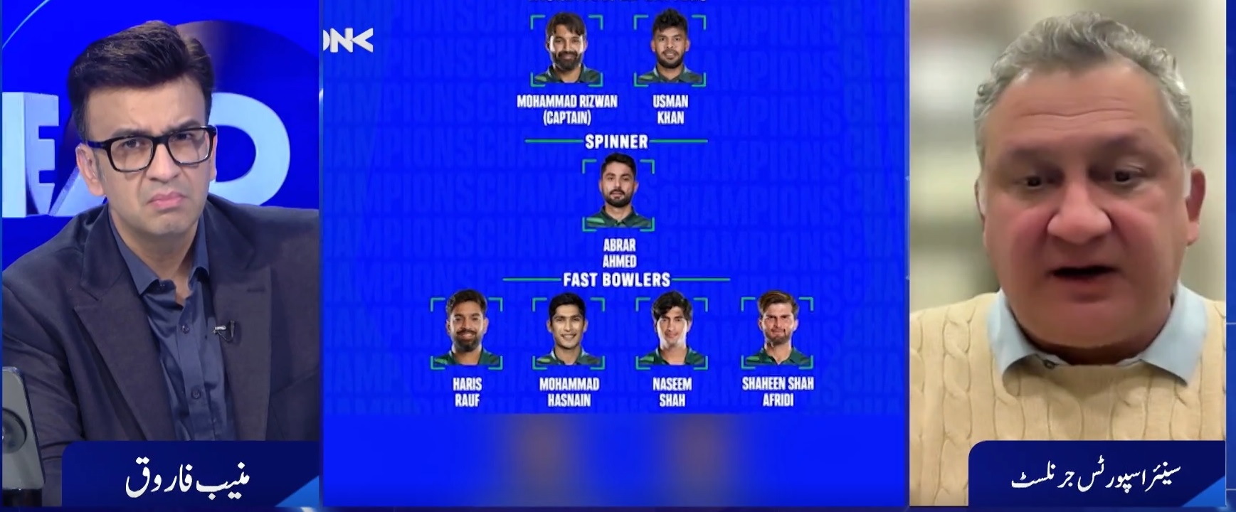 ڈاکٹر نعمان نیاز نے کہا کہ فہم اشرف کی ناقص کارکردگی کے باوجود اُن کو ٹیم میں شامل کرنا سمجھ سے باہر ہے۔ انہوں نے کہا کہ سعود شکیل اور عثمان خان کو آپ نے اکتوبر کے بعد وائٹ بال کرکٹ میں شامل نہیں کیا جو ٹیم کو نقصان پہنچا سکتا ہے۔