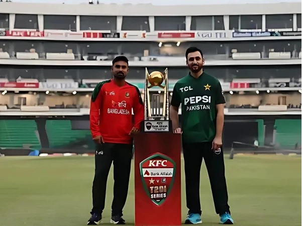 ڈھاکا: پاکستان اور بنگلا دیش کے درمیان تین ٹی20 میچز پر مشتمل سیریز کی ٹرافی کی رونمائی ڈھاکا کے ایک مقامی ہوٹل میں کر دی گئی۔ اس موقع پر دونوں ٹیموں کے کپتانوں، سلمان علی آغا اور لٹن داس نے فوٹو شوٹ میں شرکت کی۔